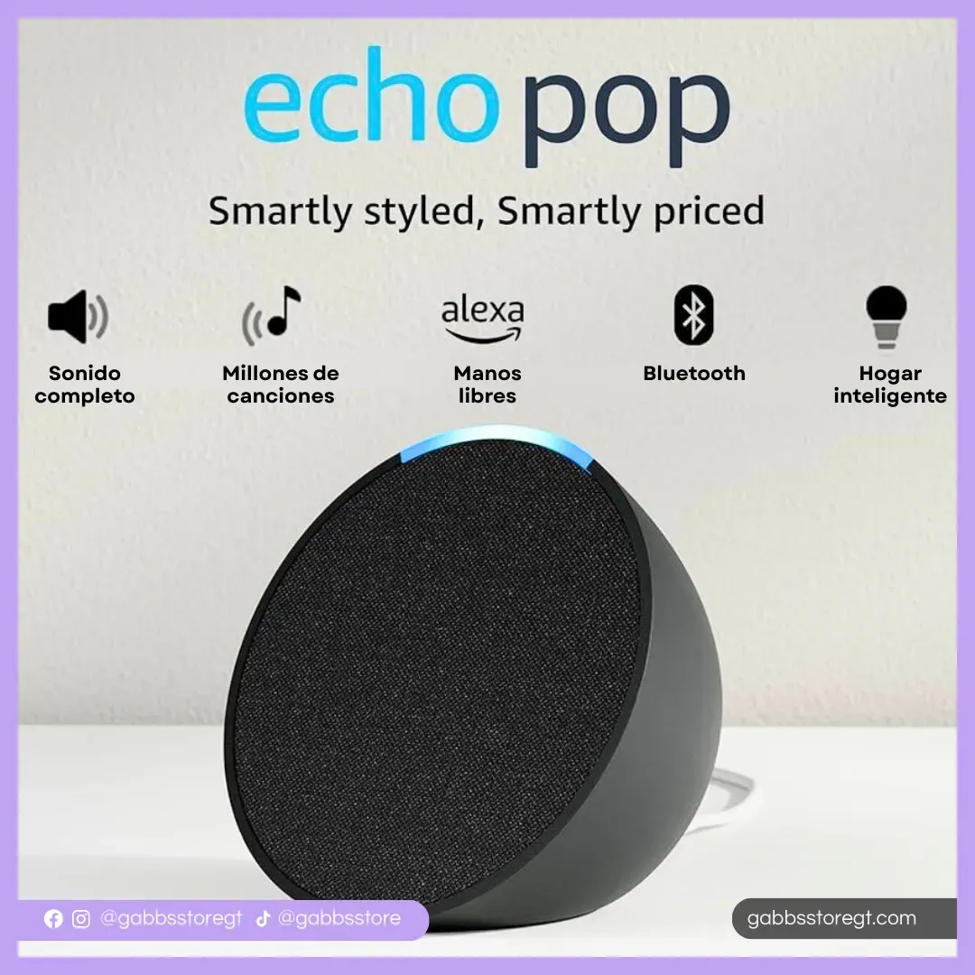 Haz tu vida más fácil con el Echo Pop. Pídele a Alexa que configure alarmas, te dé el pronóstico del tiempo o te cuente un chiste. Además, controla luces, enchufes y otros dispositivos compatibles con la voz, incluso mientras escuchas música. El Echo Pop es la forma más fácil y económica de llevar l...