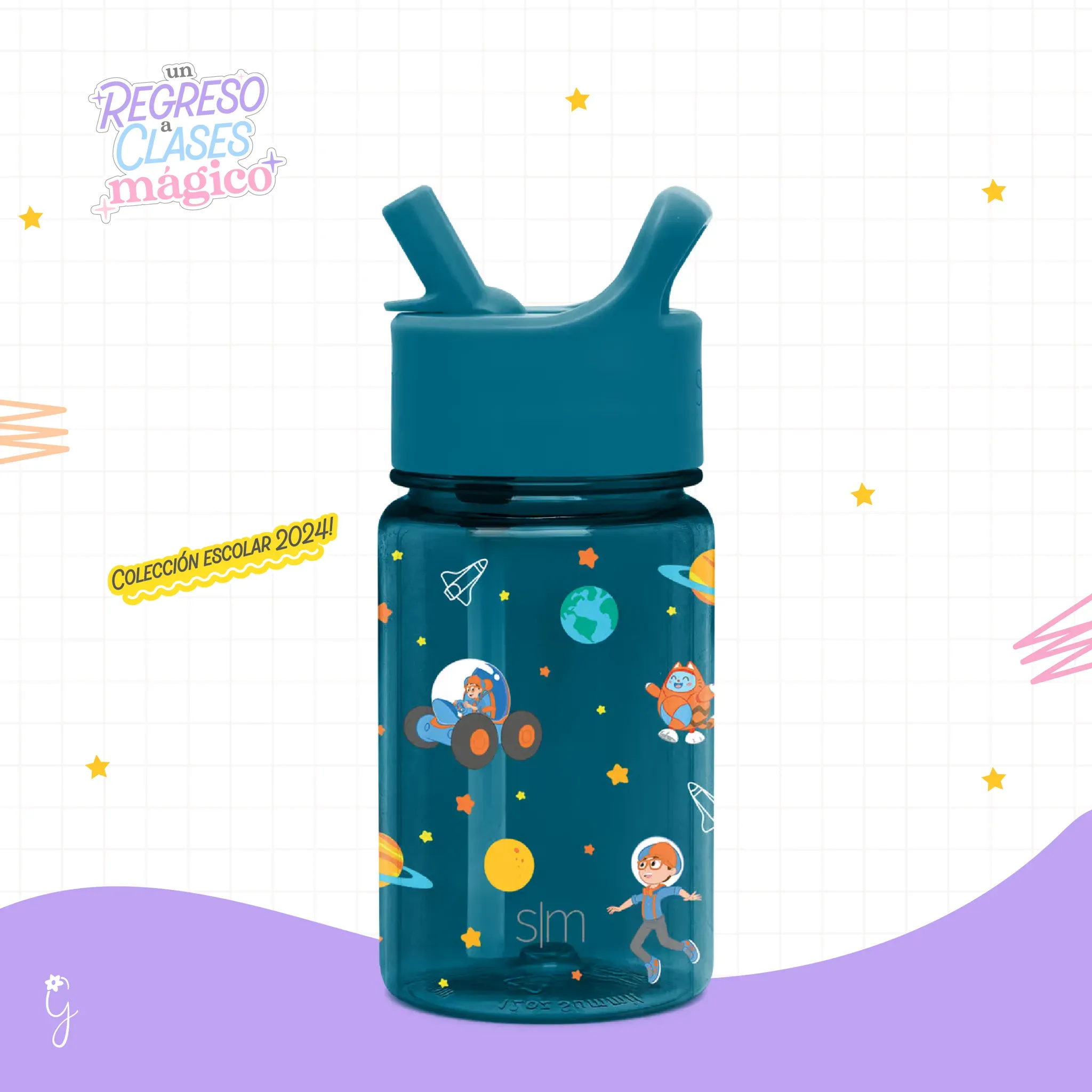 Viene con nuestra tapa con pajilla Simple Modern que tiene una boquilla que se pliega hacia abajo y un asa perfecta para que la puedan agarrar los pequeños dedos o para enganchar a un bolso.