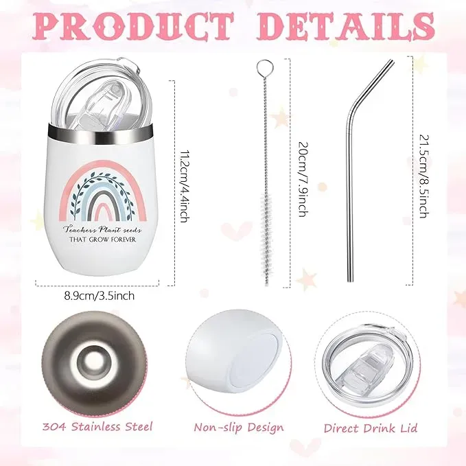 Cada vaso de regalo para profesores está equipado con una tapa, una pajita y un cepillo, conveniente para el uso diario y la limpieza; el vaso de regalo de agradecimiento para profesores es de aproximadamente 12 onzas, suficiente para beber; es un buen regalo para profesores de jardín de infantes, p...